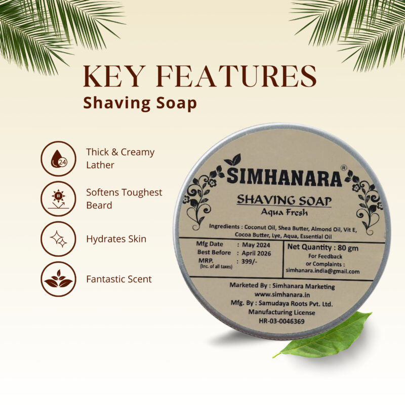 Simhanara Aqua Fresh Shaving Soap|80 grm|